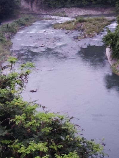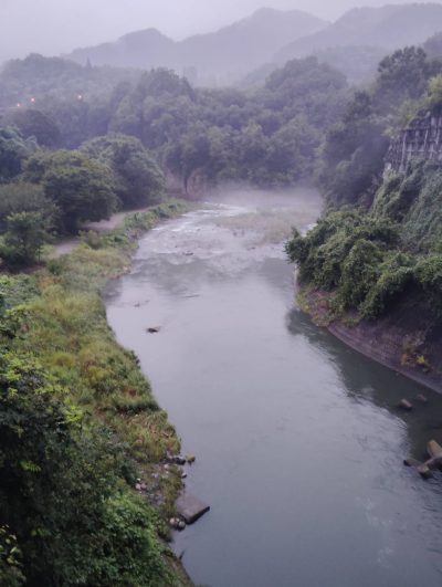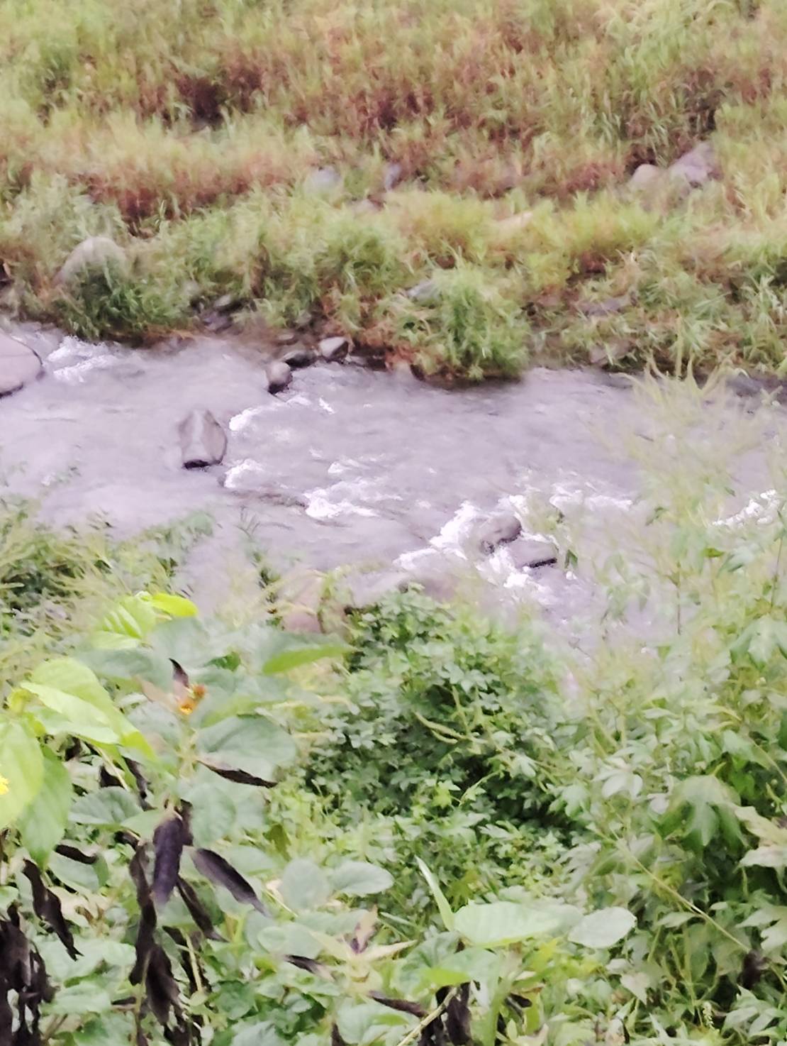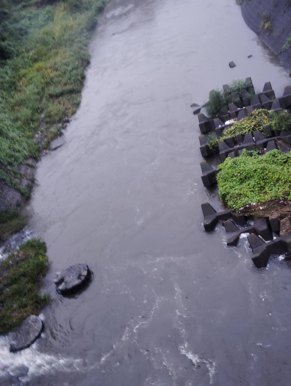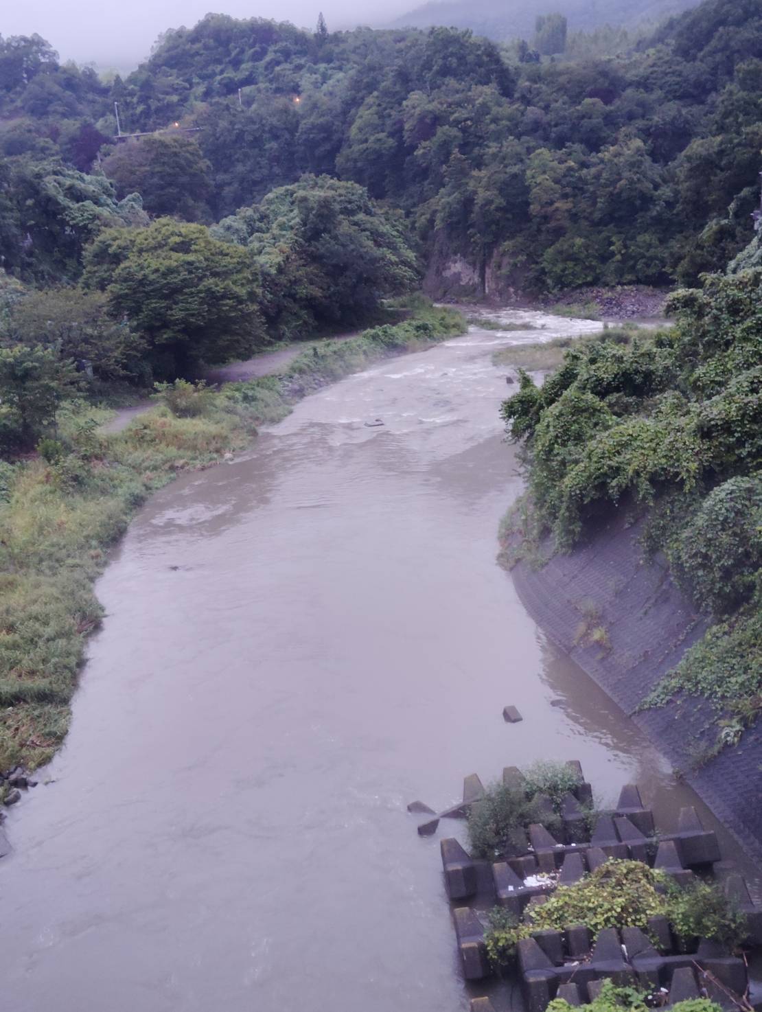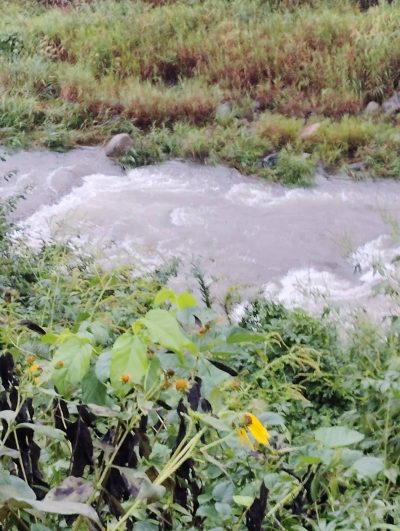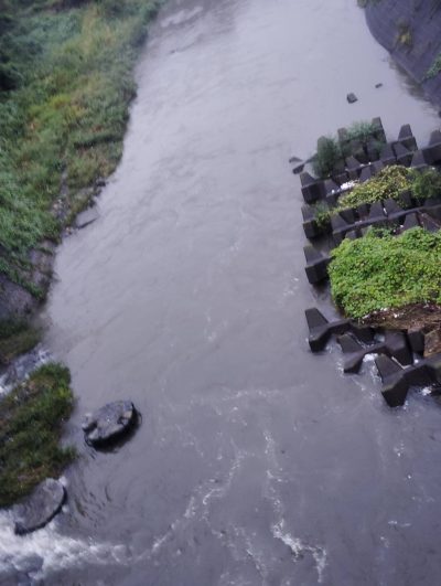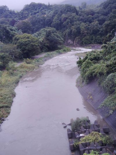 昨夜の大雨で増水